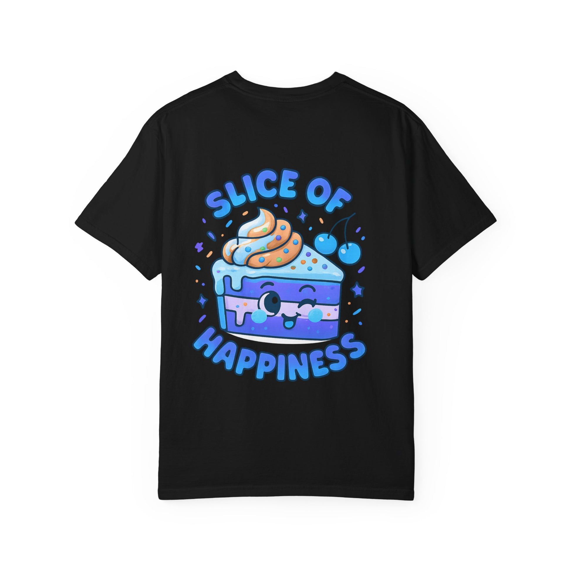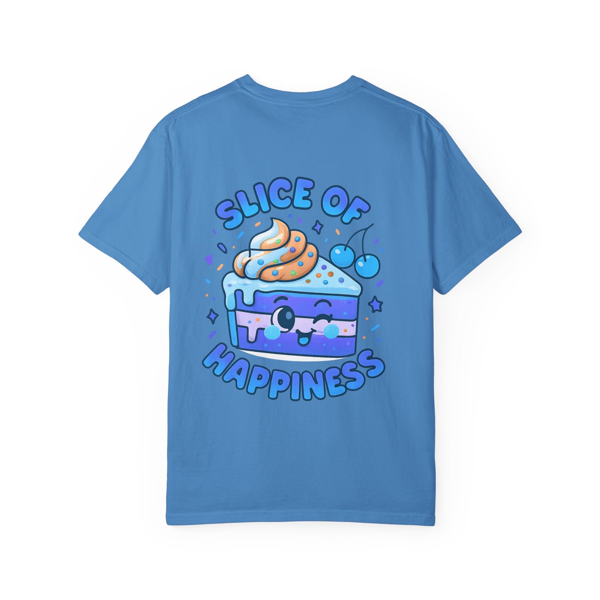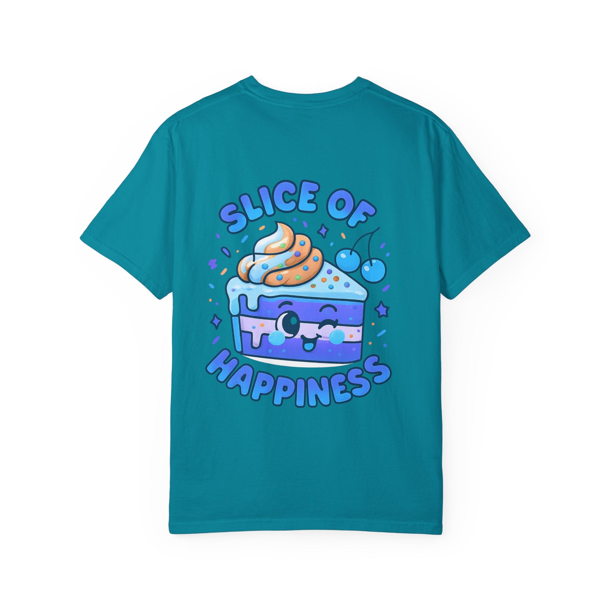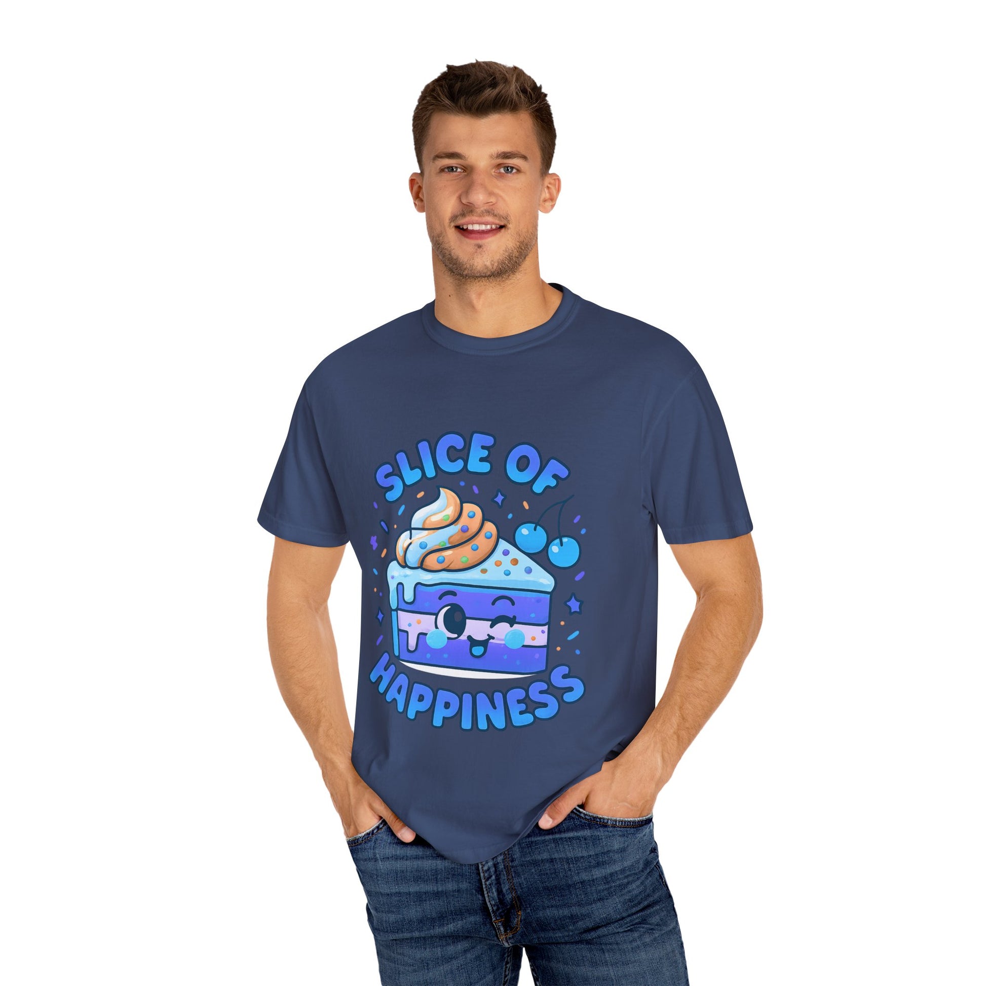 Celebrate joy and whimsy with our vibrant Unisex Garment-Dyed T-shirt! Featuring a playful design that declares 'Slice of Happiness', this tee is perfect for those who love to spread positivity and fun. Made from ultra-soft, 100% ring-spun cotton, it provides all-day comfort whether you're hanging out with friends or enjoying a casual day out. Available in a variety of sizes from S to 4XL, it’s designed to fit everyone comfortably. The garment-dyed fabric offers a unique texture and unbeatable softness, making it a staple in your wardrobe. Perfect for birthday celebrations, casual gatherings, or as a delightful gift for loved ones, this shirt is a reminder to embrace the sweet moments in life. Ideal for anyone who loves fun, colorful attire and wants to showcase their cheerful personality!