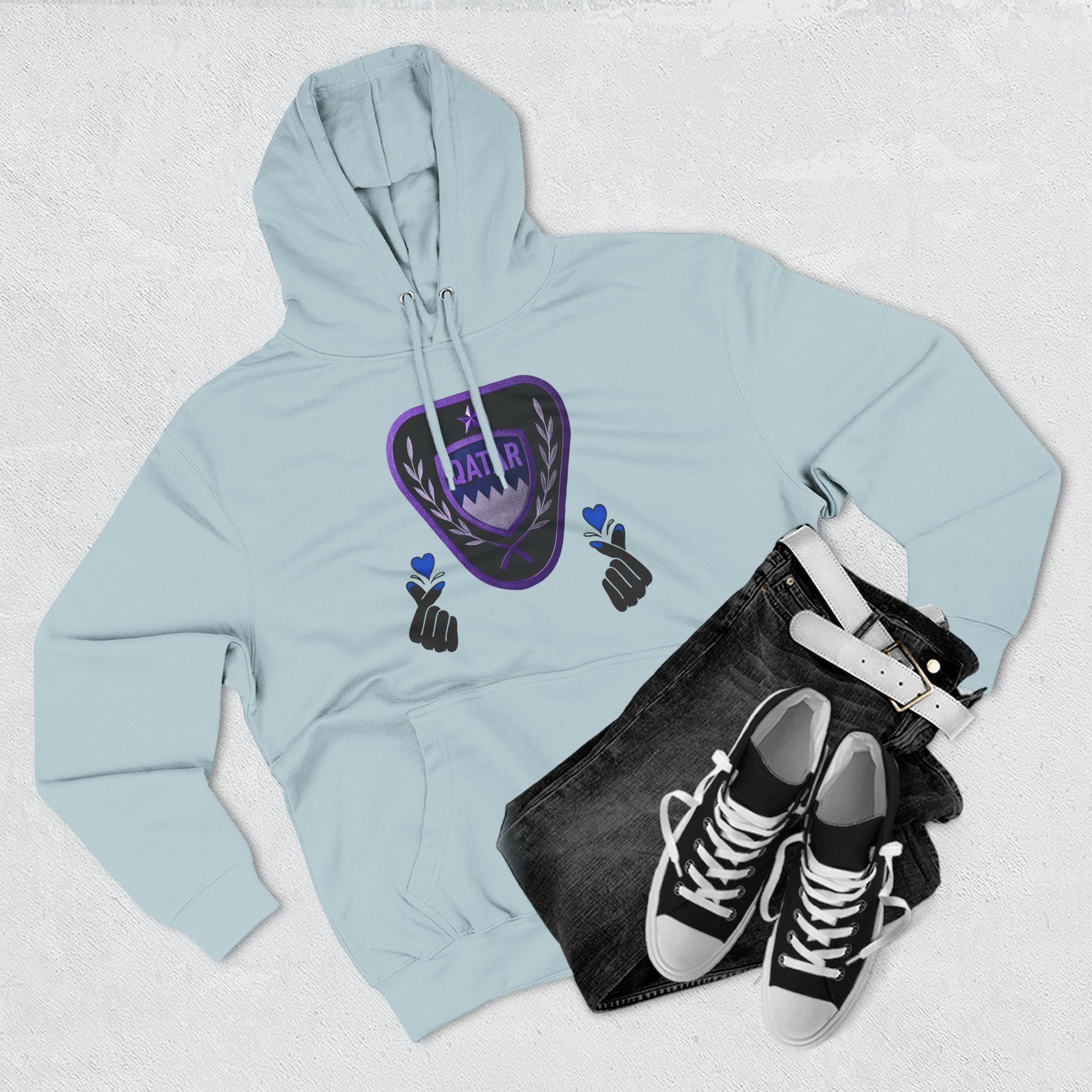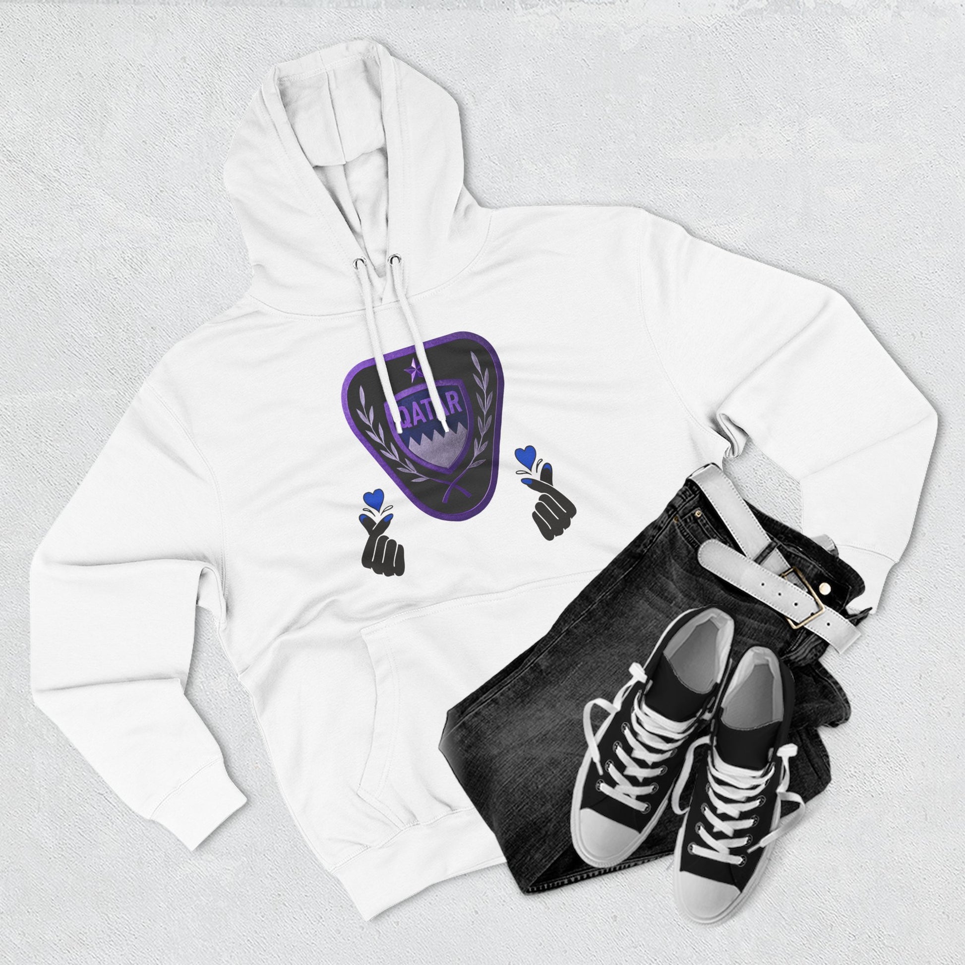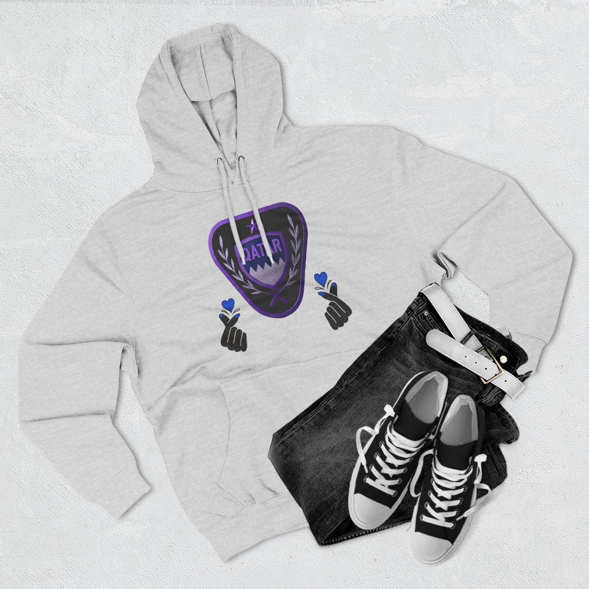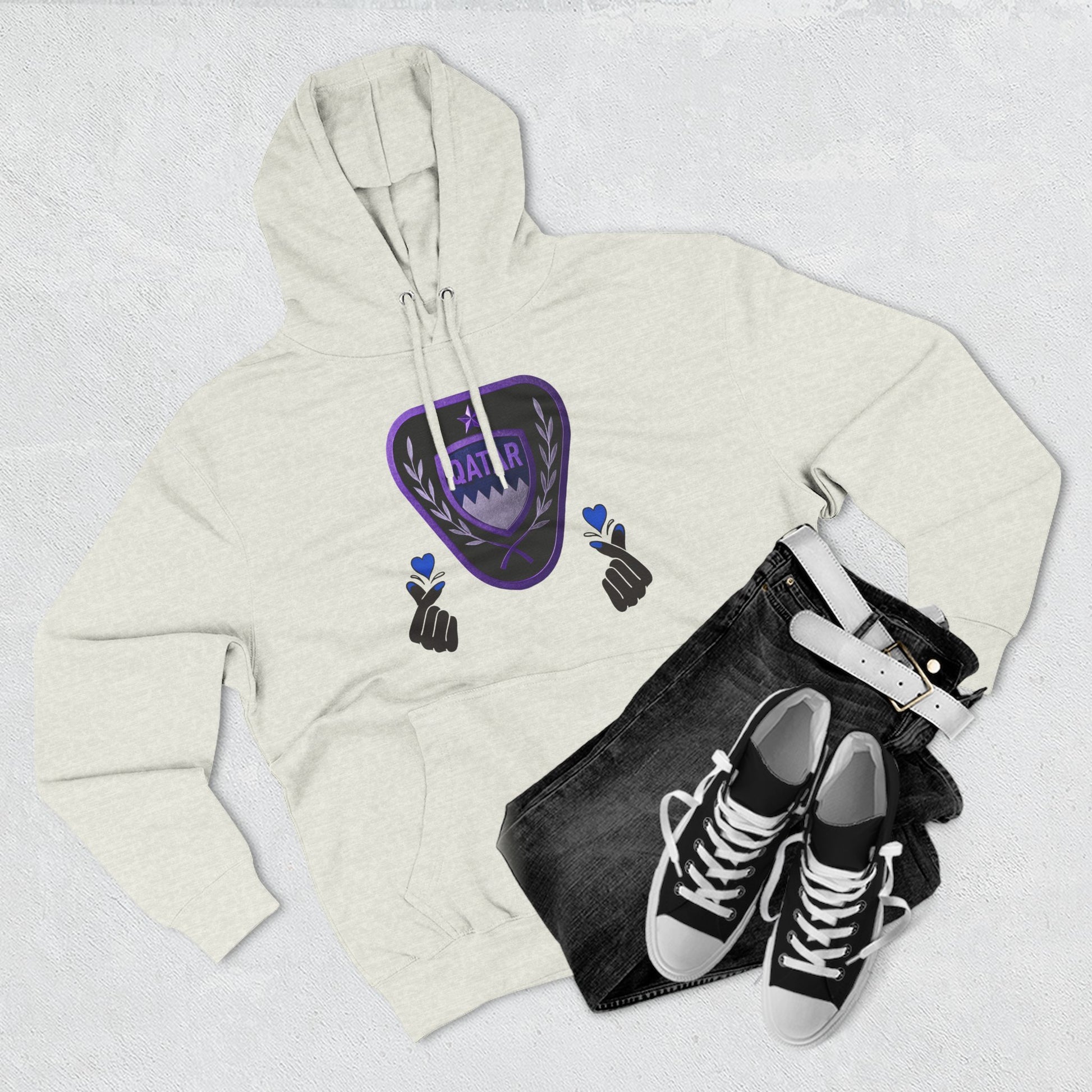 Stay cozy and stylish with the Qatar Love hoodie. The three-panel fleece design provides warmth and comfort, perfect for casual wear or lounging at home. This hoodie is ideal for those who have a special connection to Qatar or enjoy spreading love and positivity. Great for gifting on Valentine's Day, anniversaries, or birthdays.