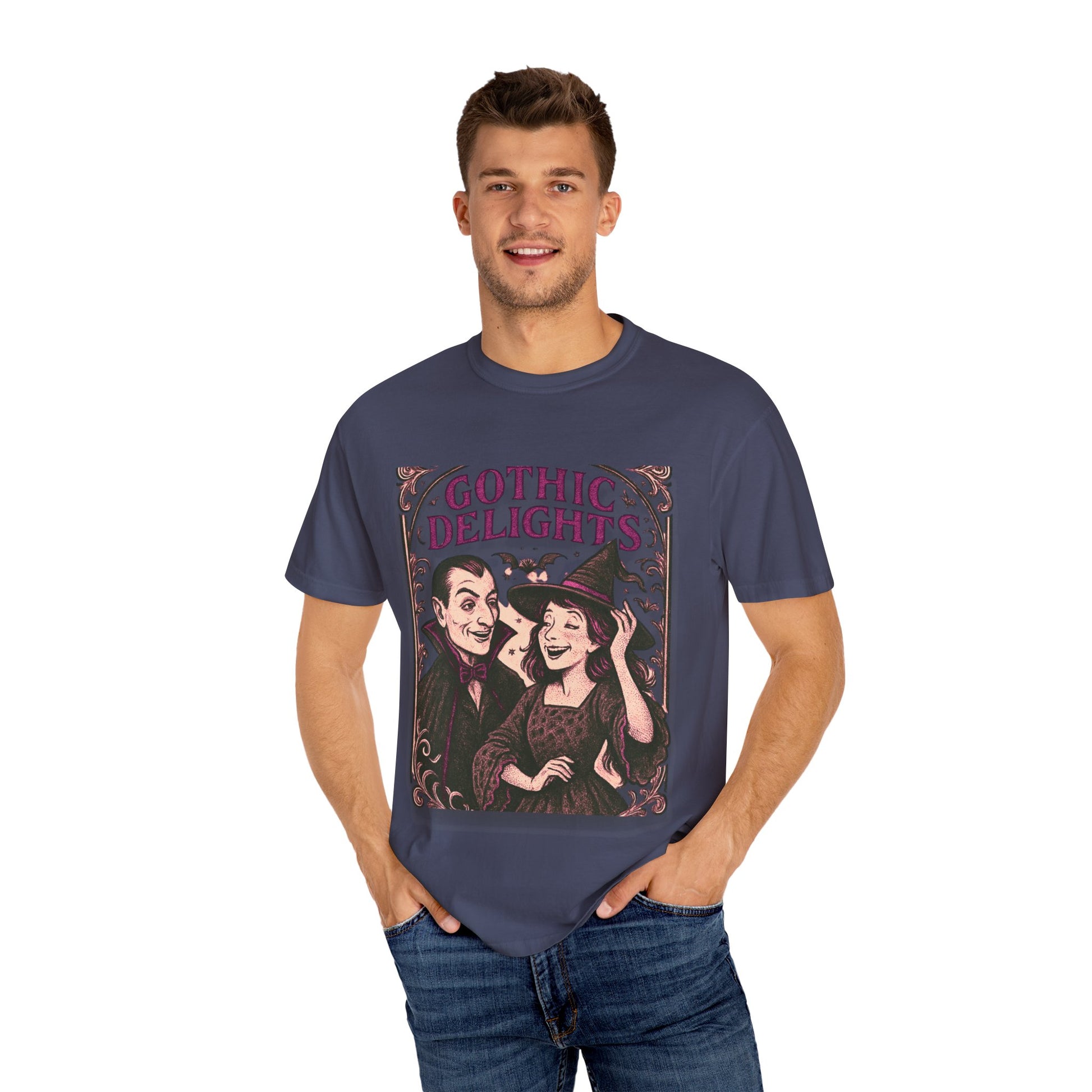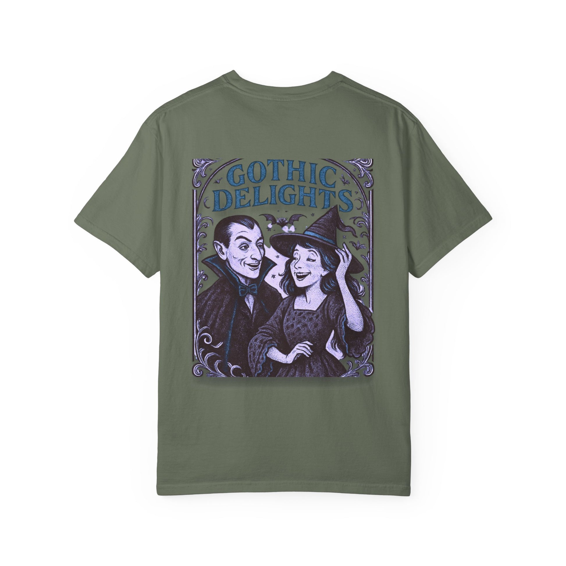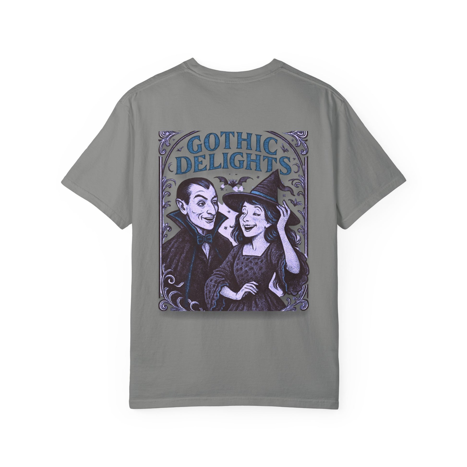 This comfortable and stylish garment-dyed T-shirt in a relaxed fit is perfect for those who love gothic aesthetics. The Gothic Delights design gives off a dark and mysterious vibe, making it ideal for those who enjoy alternative fashion. Whether worn casually or dressed up, this T-shirt is great for Halloween, goth events, or everyday wear for anyone who loves unique and edgy styles.