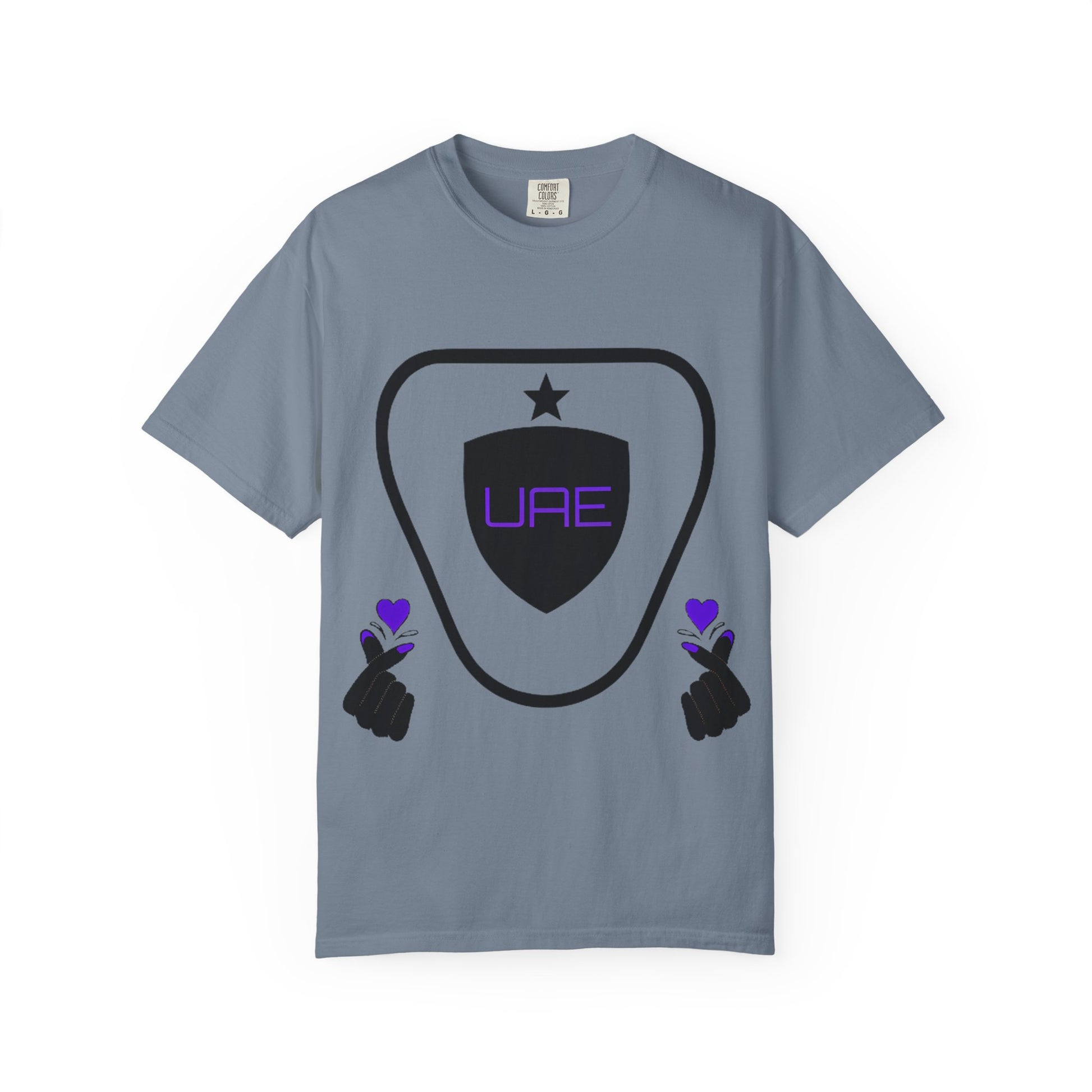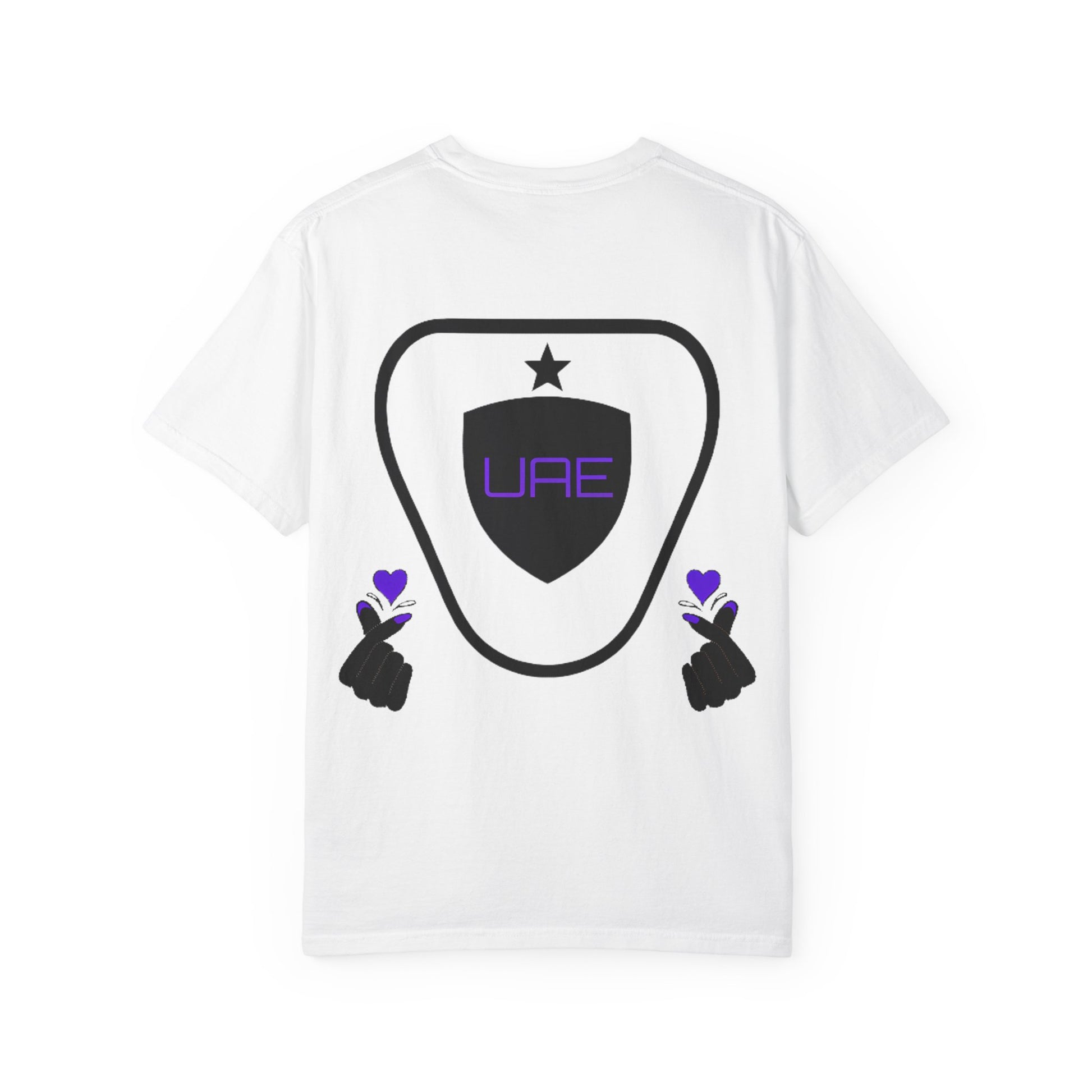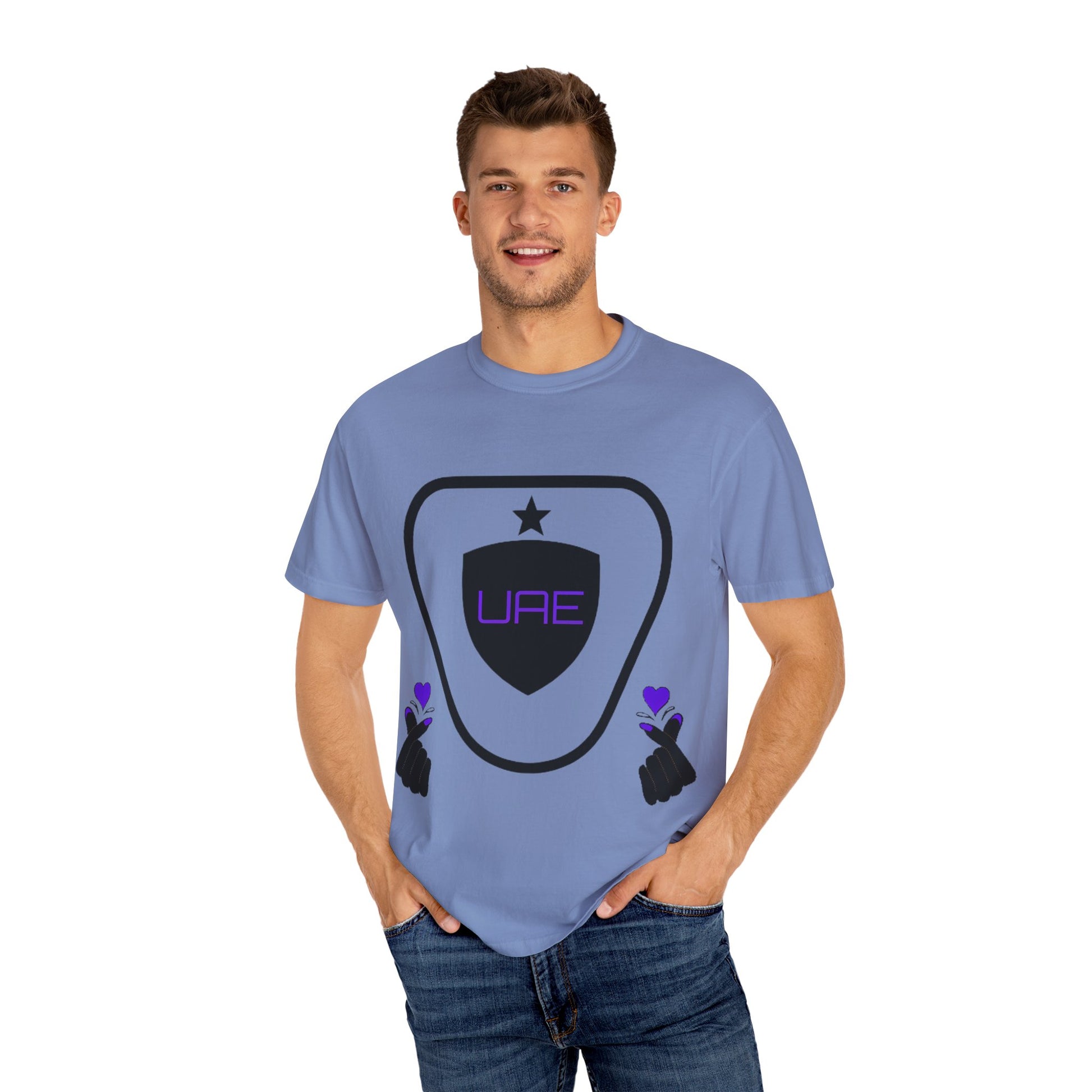 Celebrate UAE PRIDE with this unisex garment-dyed T-shirt. The soft color and texture of the garment give off a patriotic vibe, making it perfect for anyone proud of their UAE heritage. This T-shirt is a great addition to your casual wardrobe and is ideal for national holidays, celebrations, and cultural events.