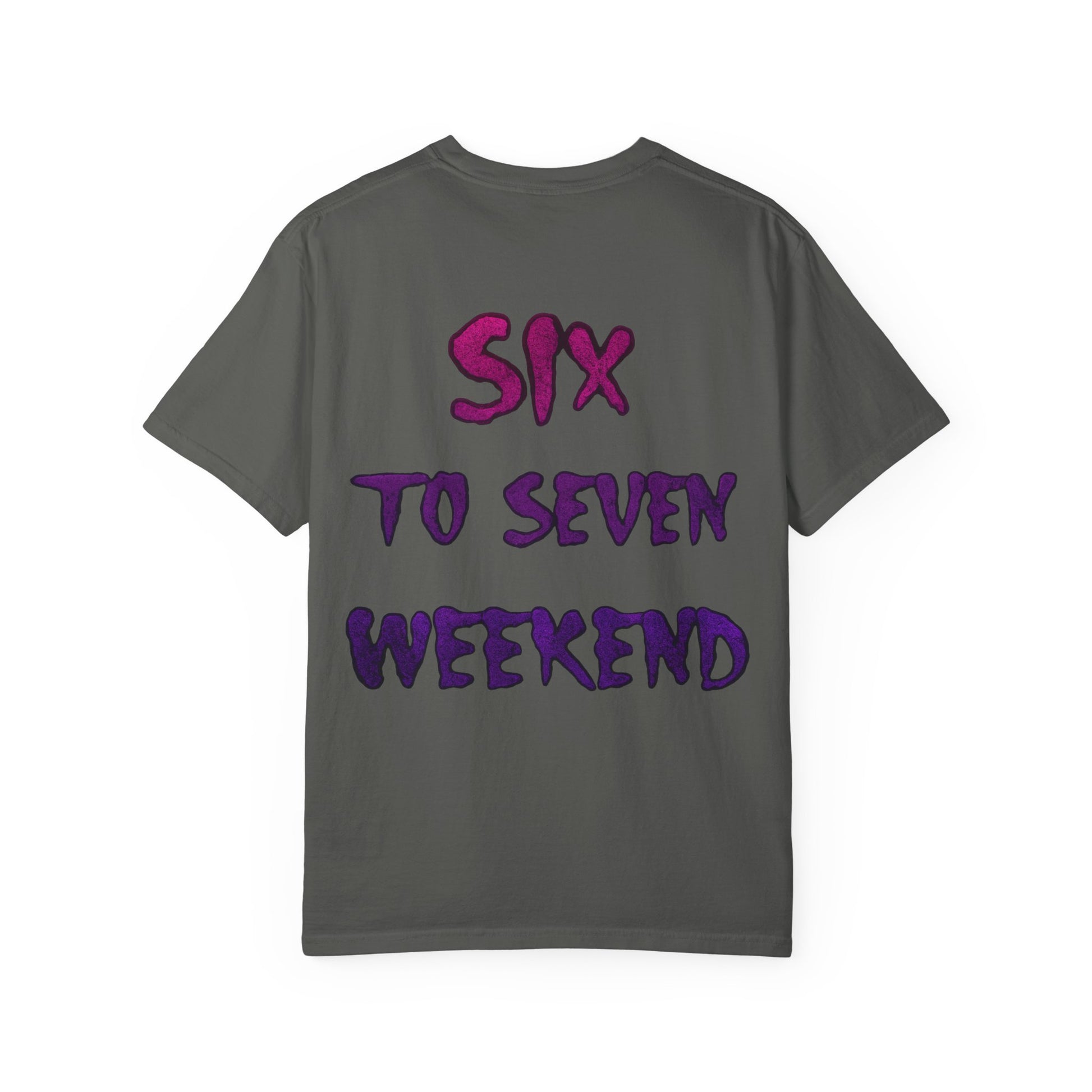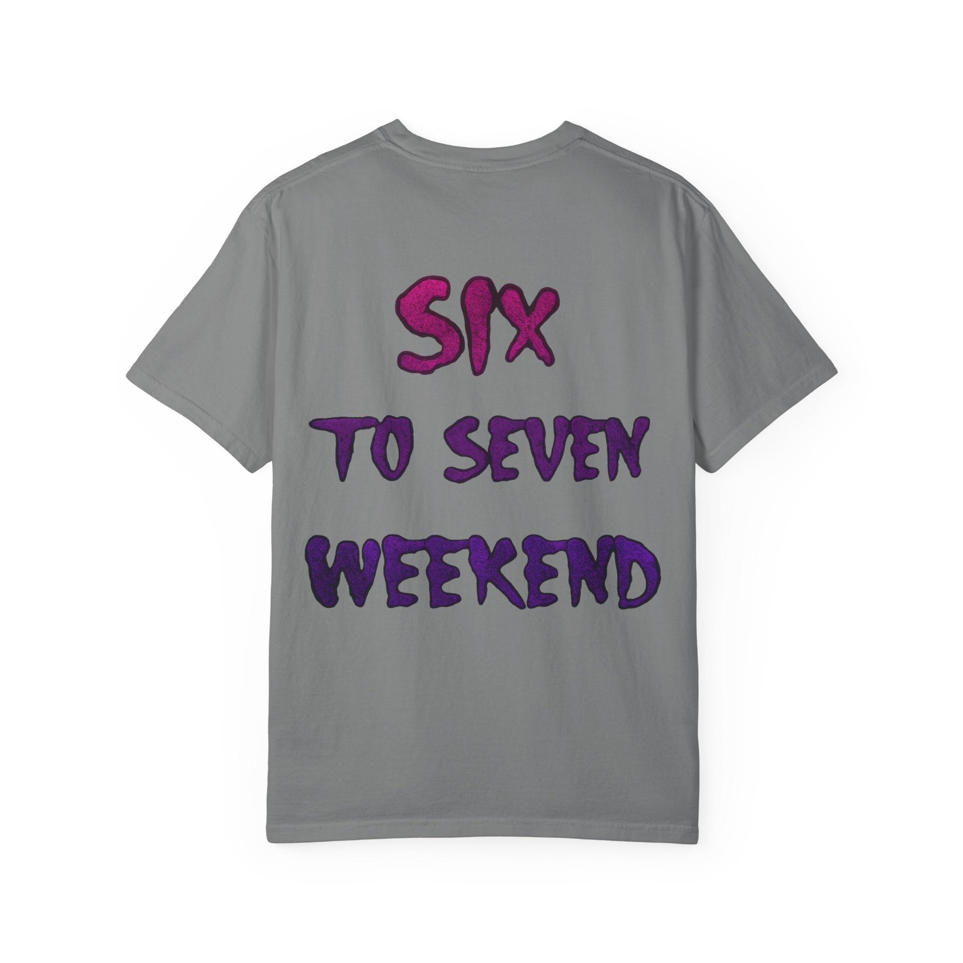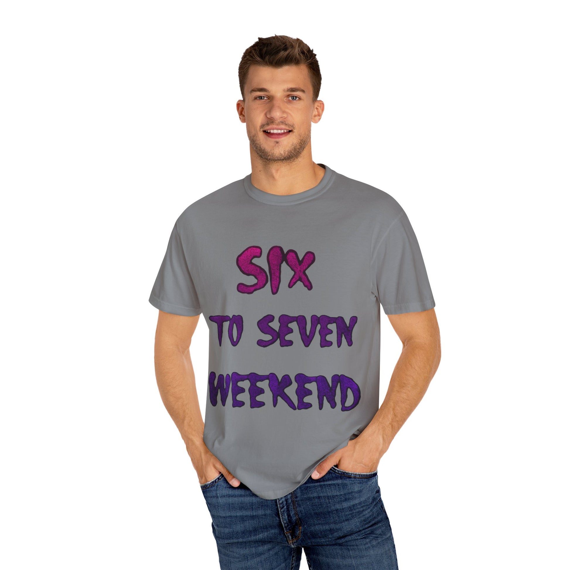 This 6-7 WEEKEND T-shirt exudes a casual and laid-back vibe, perfect for weekend lounging or casual outings. It is ideal for individuals looking for a comfortable and versatile addition to their wardrobe. This T-shirt is relevant for those who enjoy weekends and relaxation, making it a great choice for weekend getaways, brunches, and coffee dates.