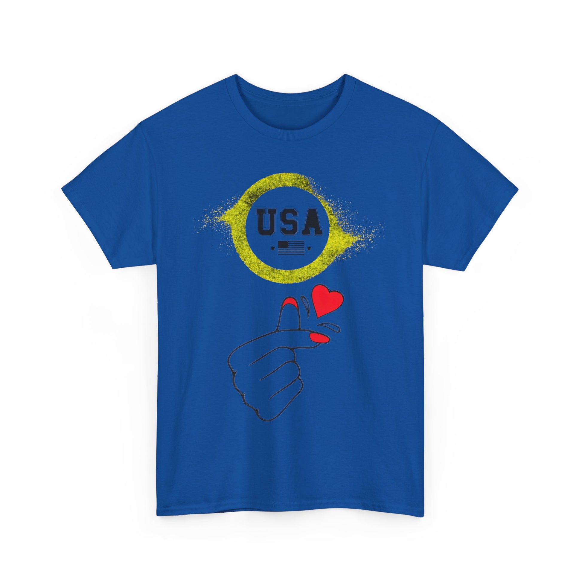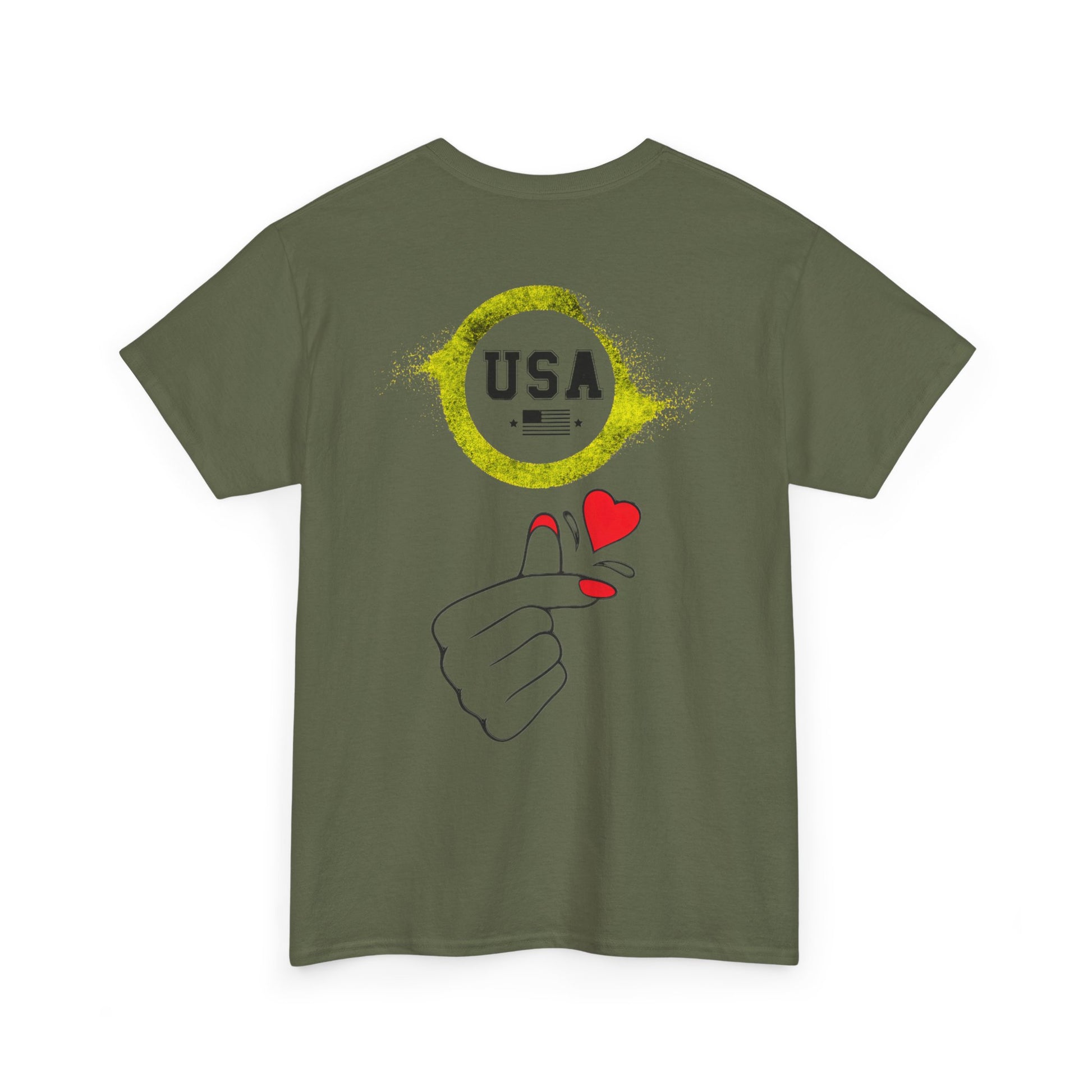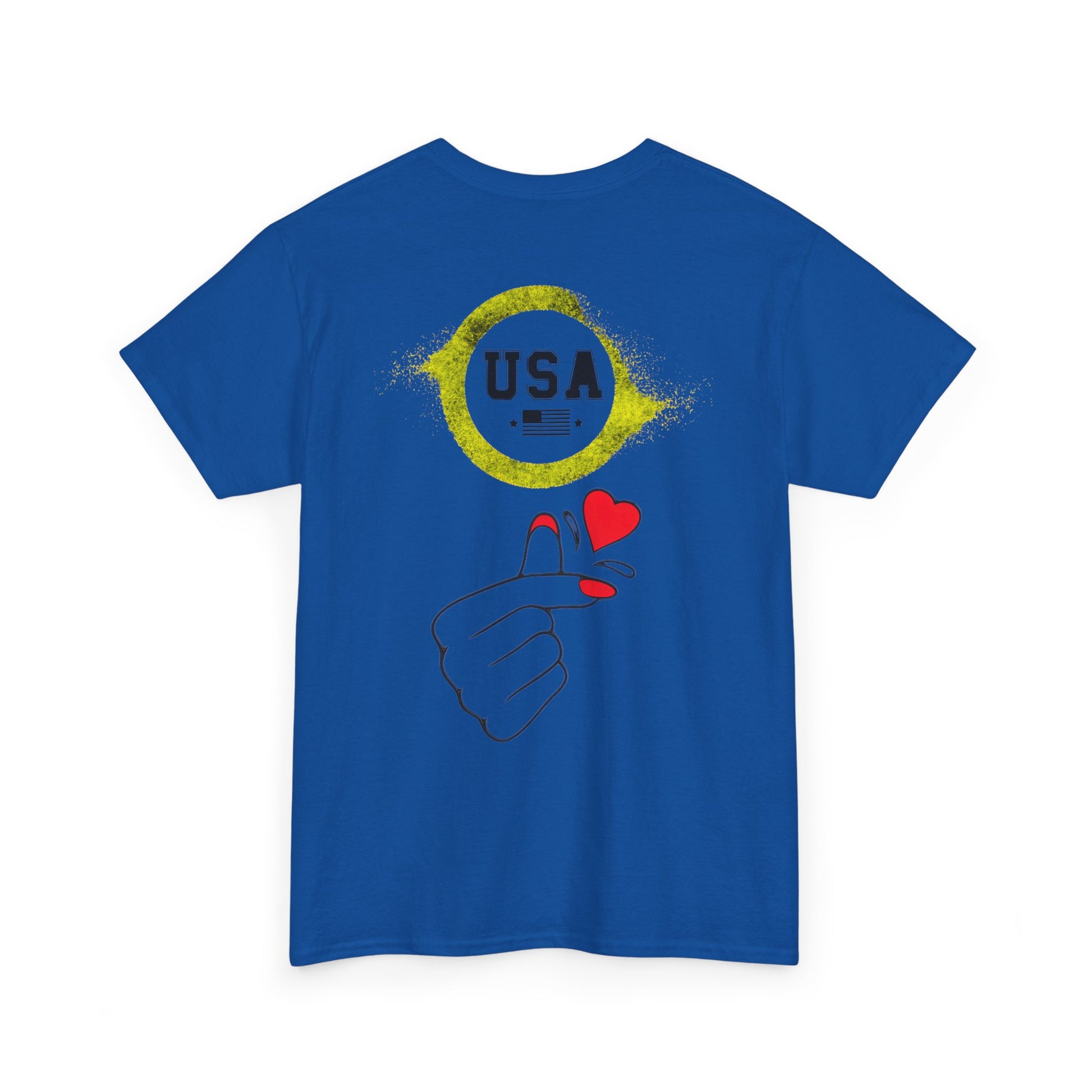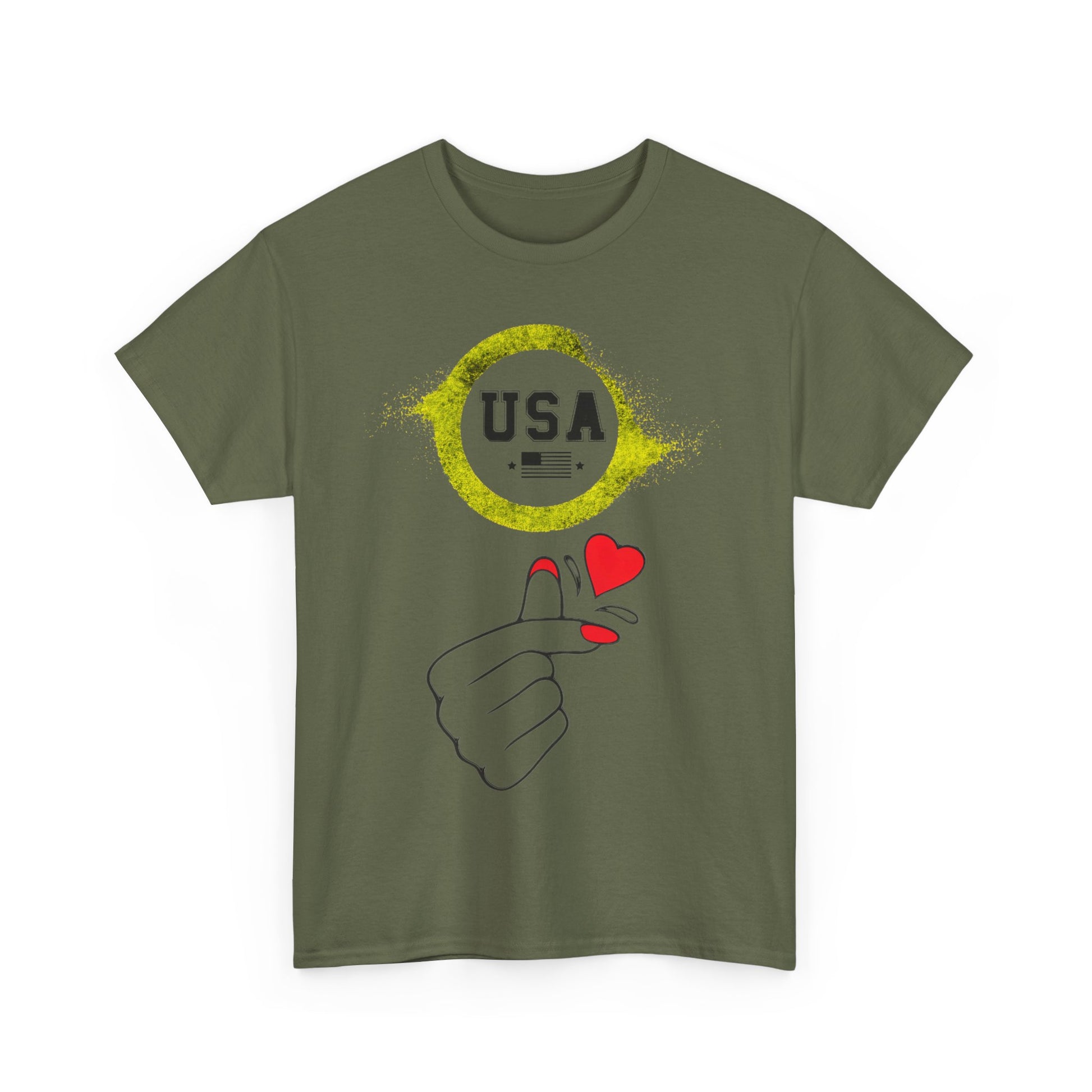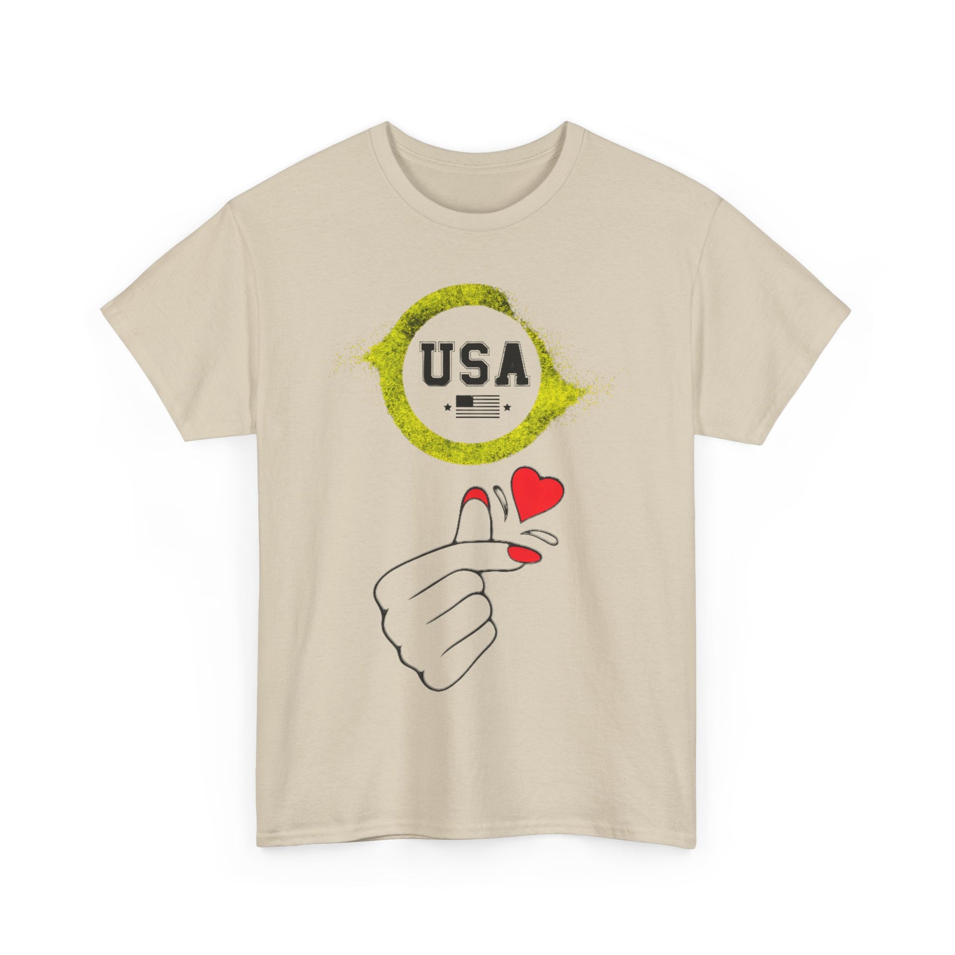 Introducing the perfect wardrobe staple, this Unisex Heavy Cotton Tee combines comfort with style. It features a unique design that showcases a fun and patriotic vibe, making it a great addition to any casual outfit. This shirt is perfect for expressing your love for the USA, whether you're at a barbecue, watching a game, or celebrating national holidays. Ideal for individuals who appreciate quality and sustainability, this tee is a fantastic gift for friends and family during occasions like Independence Day, Memorial Day, or casual gatherings. Its timeless design makes it suitable for any season, providing a relaxed fit for laid-back days.